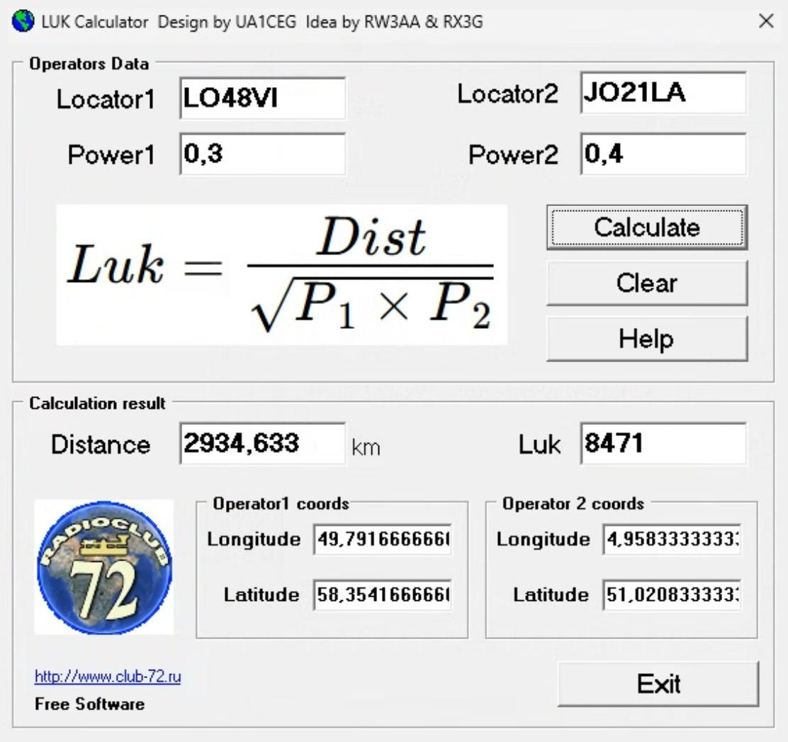 Программа расчета расстояний и ДПМ (дальность связи, приведенная к мощностям), созданная Юрием UA1CEG/SK, идея Вячеслава RW3AA и Олега RX3G. Программа доработана Дмитрием R3SAJ