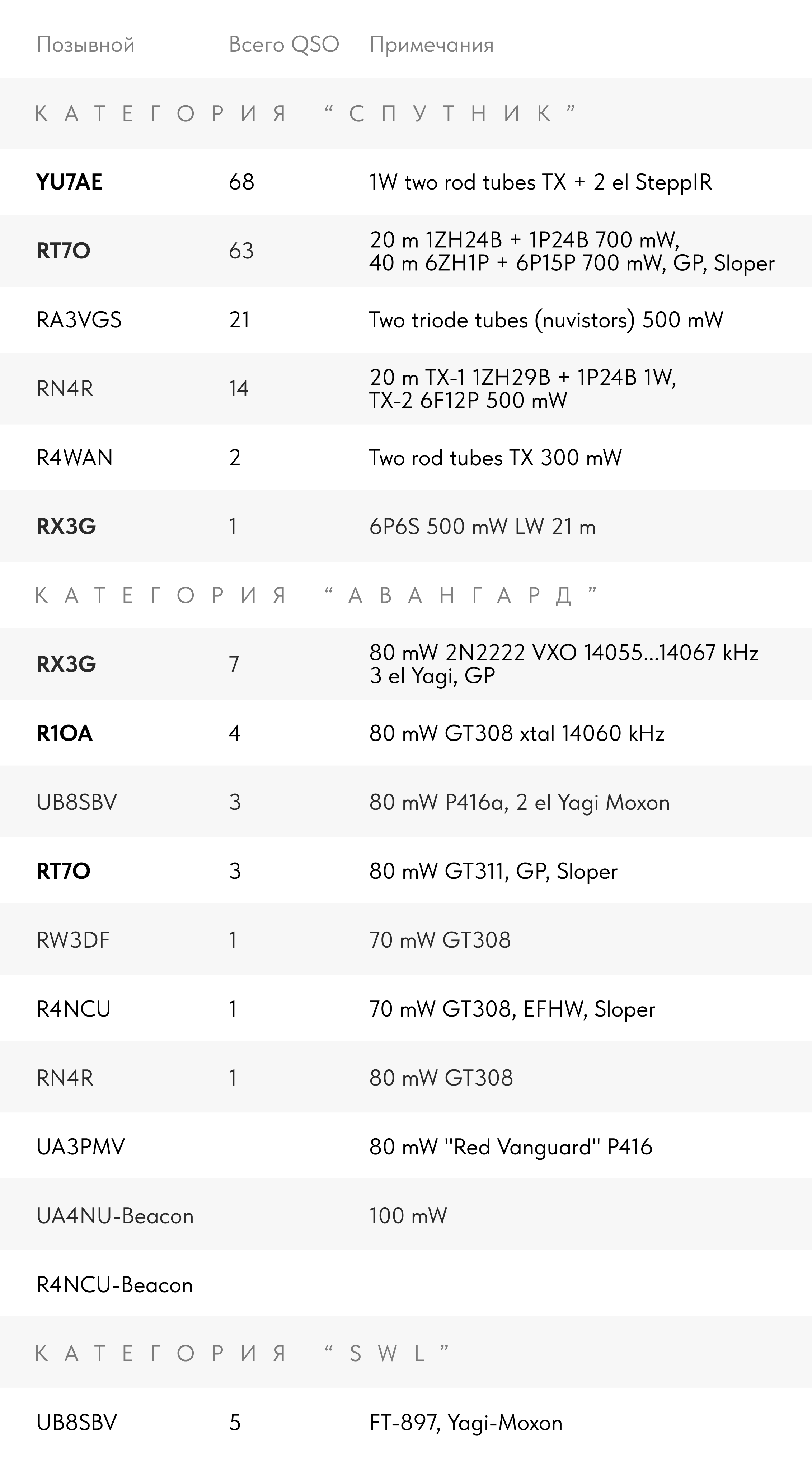 RT7O/S — YO/F4LKW/p, RA3VGS/S, EW1CY, HA5MIG, DF5WS, RN4R/S, DL3BWF, LZ2MW, DL0HAM, DL1AAH, HA7NE, TA3OPS, HA7RJA, 9A3DV, OY1CT, OK2BVX, E72U, HA3IS, YT3T, YO9CMC
